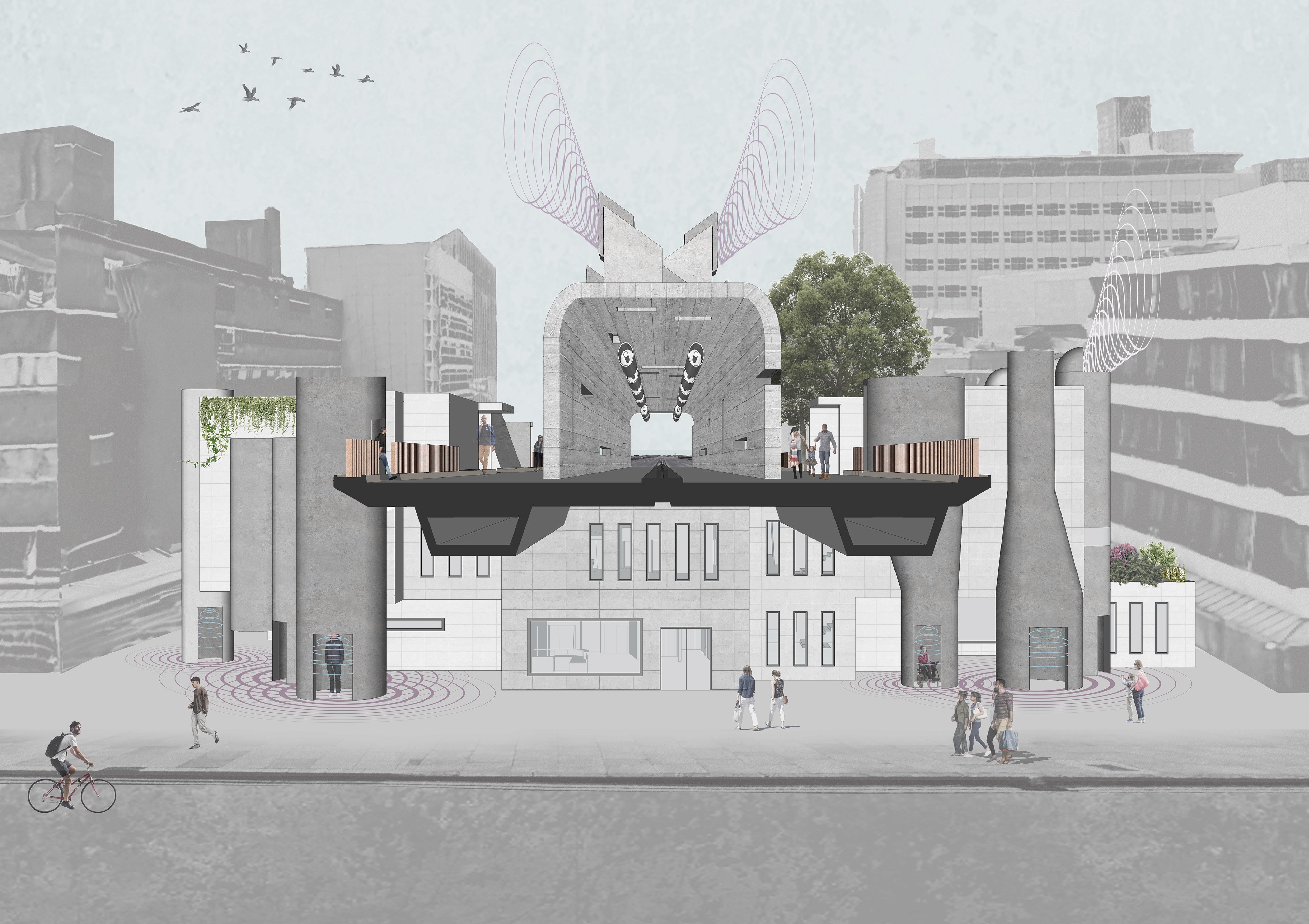 As the culmination of my architecture degree at the Manchester School of Architecture, I produced a series of architectural illustrations that translate spatial concepts into constructed visual narratives. Working from technical drawings and models, I built detailed collages and rendered scenes that situate the proposal within its urban context — balancing material clarity with atmosphere and human scale. These images were developed to communicate both structure and experience, combining precision with a graphic sensibility to express how the architecture operates, feels and connects to the city around it.